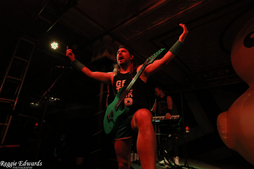 Singer Chris Bowes was decked out in a trucker hat, a green plaid kilt, sandals and neon green toenail polish, while guitarist Máté Bodor had on green hot pants. They kicked it off with “Keelhauled” before ripping into “No Grave but the Sea” and “The Sunk’n Norwegian” and it was clear at that moment that the crowd was there to be part of the show- not just at the show.