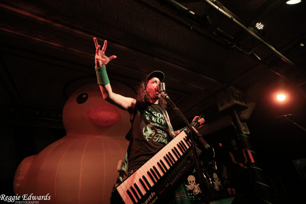After a quick stage change, it was time for Alestorm to grace the stage. With a giant inflatable rubber duck in the middle of the stage- it’s still amazing they got it to fit in the intimate venue- there was no shortage of entertainment.